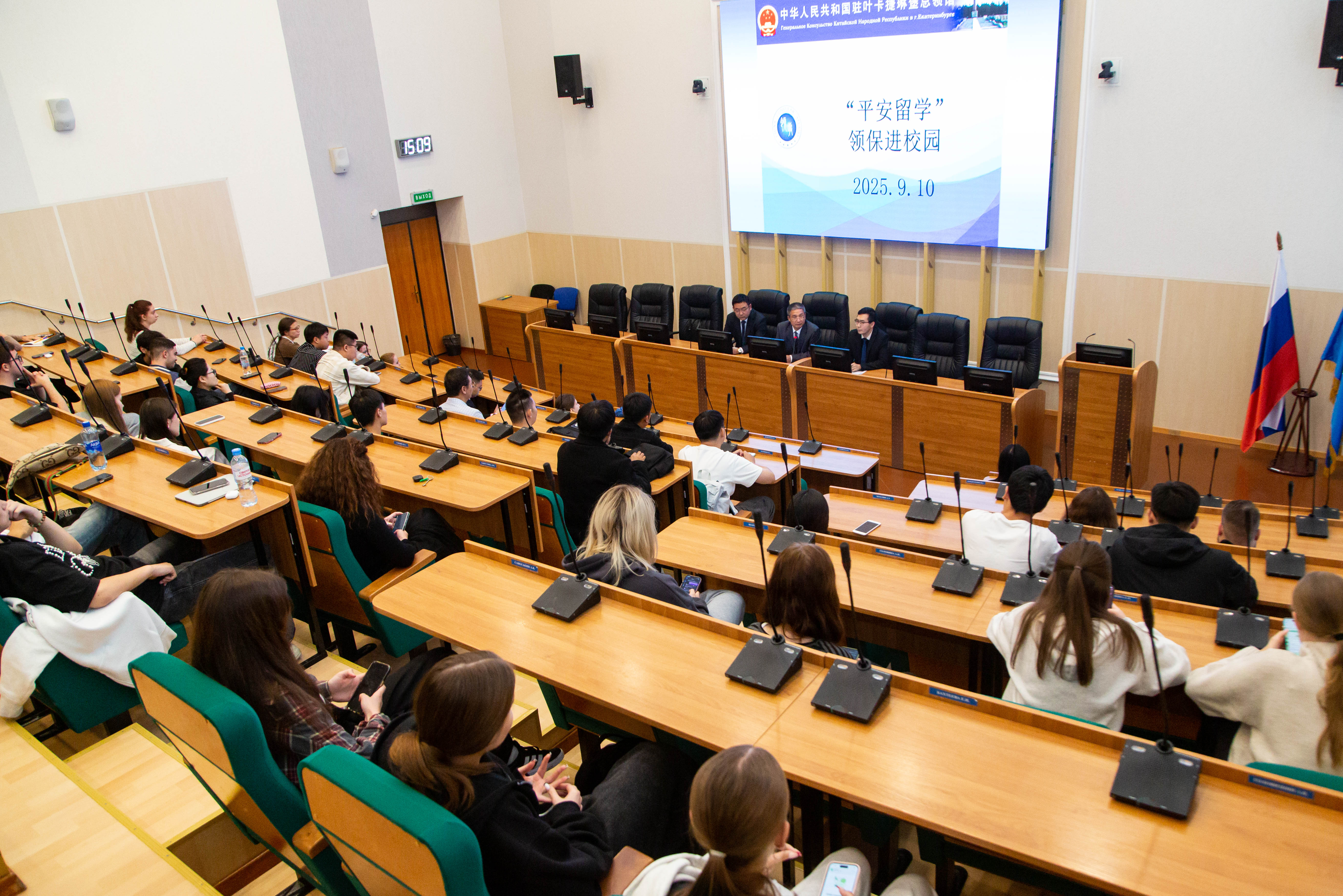 在烏拉爾國立經濟大學,中國駐葉卡捷琳堡總領館工作人員為中國留學生提供在烏拉爾首府和大學生活、學習和處事方面的指導