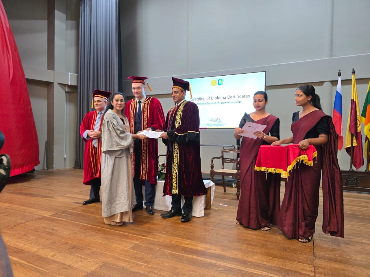 首屆畢業證書頒發儀式在烏拉爾國立經濟大學斯里蘭卡俄語中心舉行。